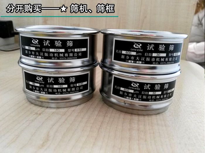 大漢機械生產(chǎn)的石墨粉試驗篩分機可分為試驗篩分機機和試驗篩分機框,單臺試驗篩分機機在3500元,一臺篩機配7個篩框,直徑有200mm、300mm兩種型號,網(wǎng)目多種,具體網(wǎng)目可根據(jù)用戶需求定制,篩框的價格在100-300元/個,這兩種產(chǎn)品可以分開購買,所以這也是影響試驗篩分機價格的大因素。
