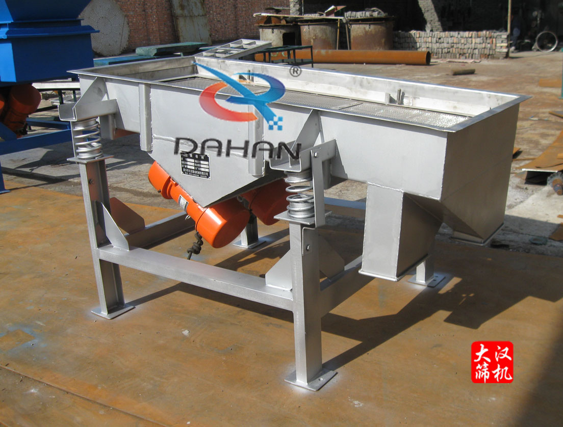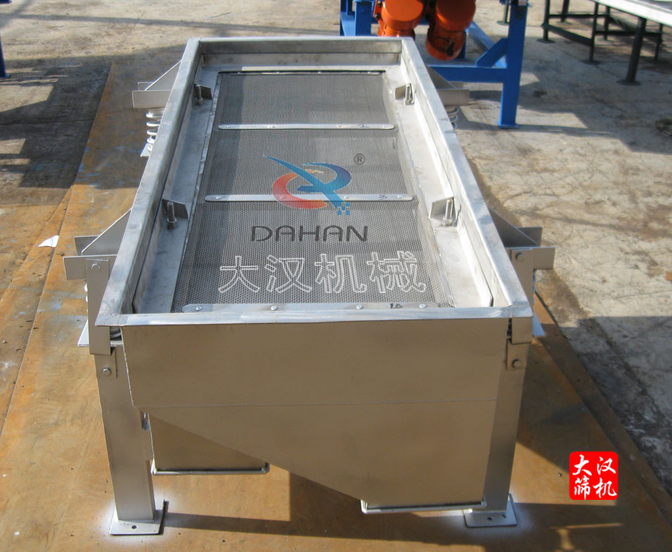 “大漢牌”DZSF-512-1S食品直線振動(dòng)篩篩面寬為50mm,長(zhǎng)1200mm,一層篩網(wǎng)二出口,與物料接觸部材質(zhì)以及直線篩篩網(wǎng)均為304不銹鋼,內(nèi)部打磨拋光,干凈衛(wèi)生,支架以及電機(jī)板、導(dǎo)力板為Q235碳鋼材質(zhì),噴防銹漆。